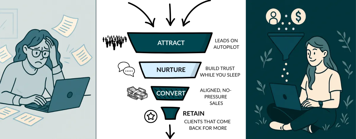 It’s about creating something quiet, steady, and powerful - a funnel that sells while you rest, that nurtures while you nap, and that grows with you, not against you.